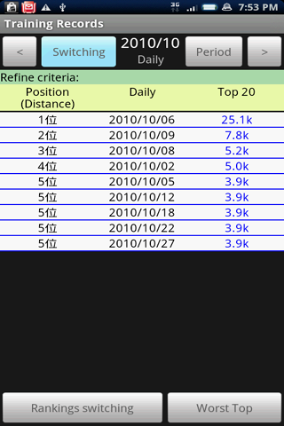 Various aggregation functions, graphs, displays a ranking, do an analysis of daily training.