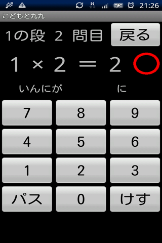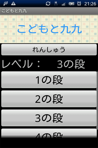 「れんしゅう」では「いんいちがいち」などの覚え方が表示され、一の段から順番に覚えることができます。