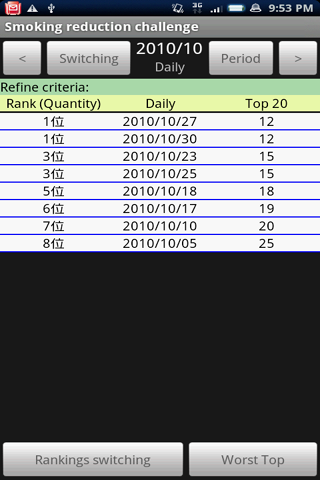 Automatic history feature, aggregate of smoking, XY graph, rankingCan be